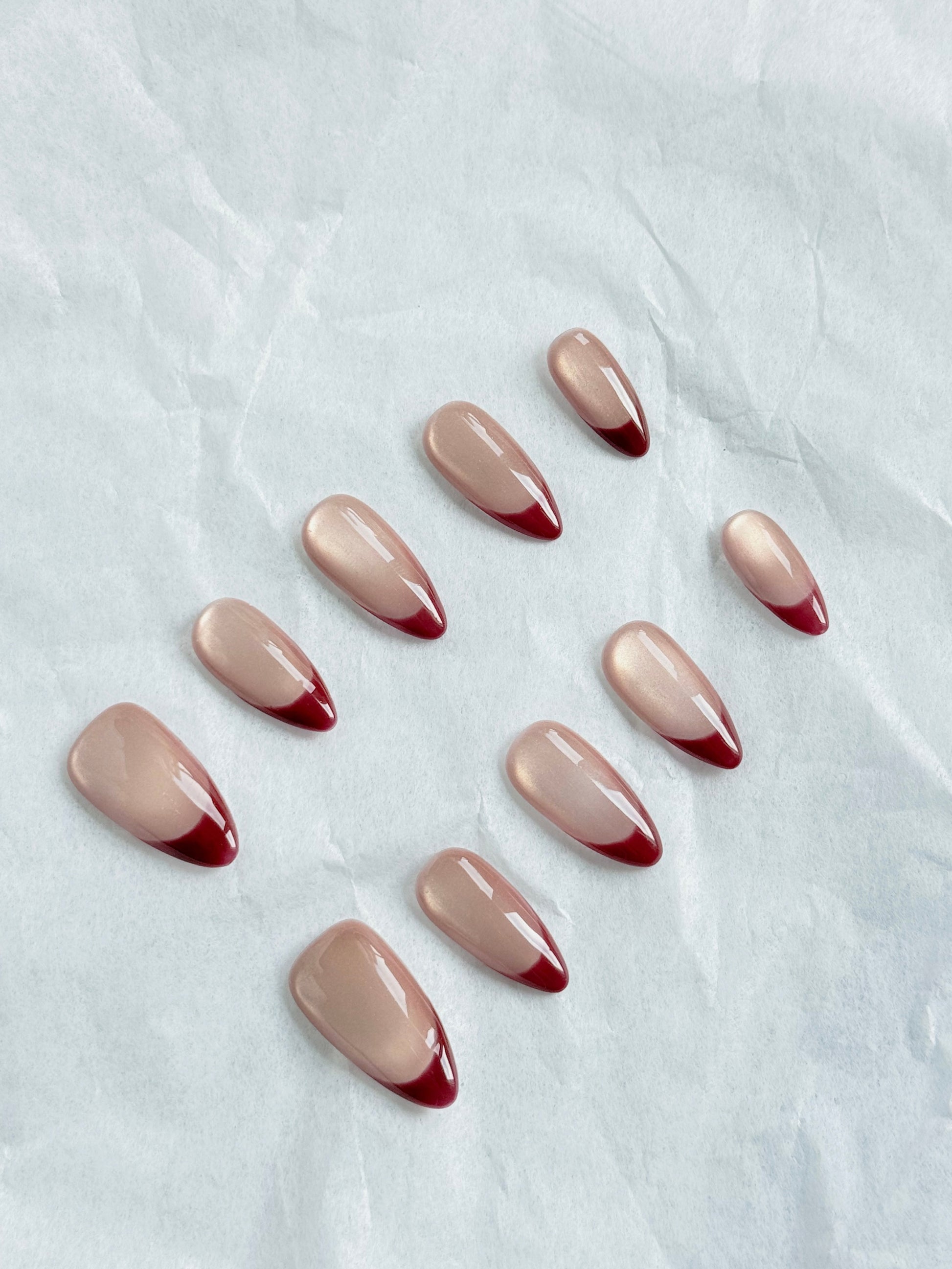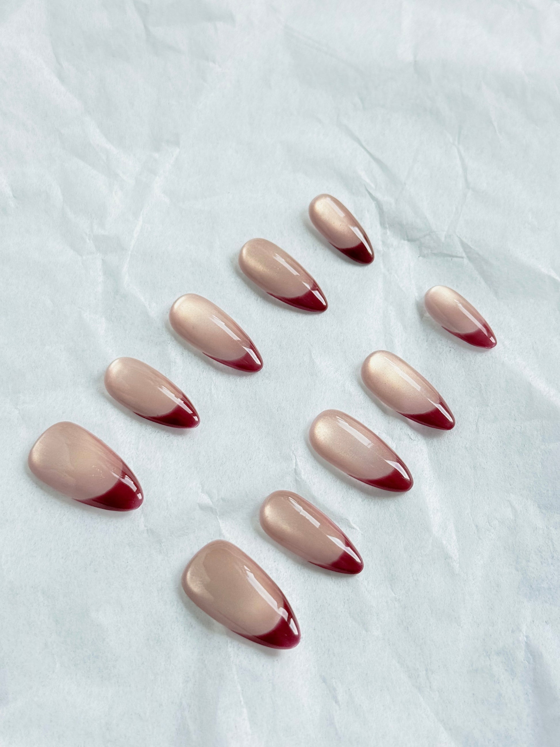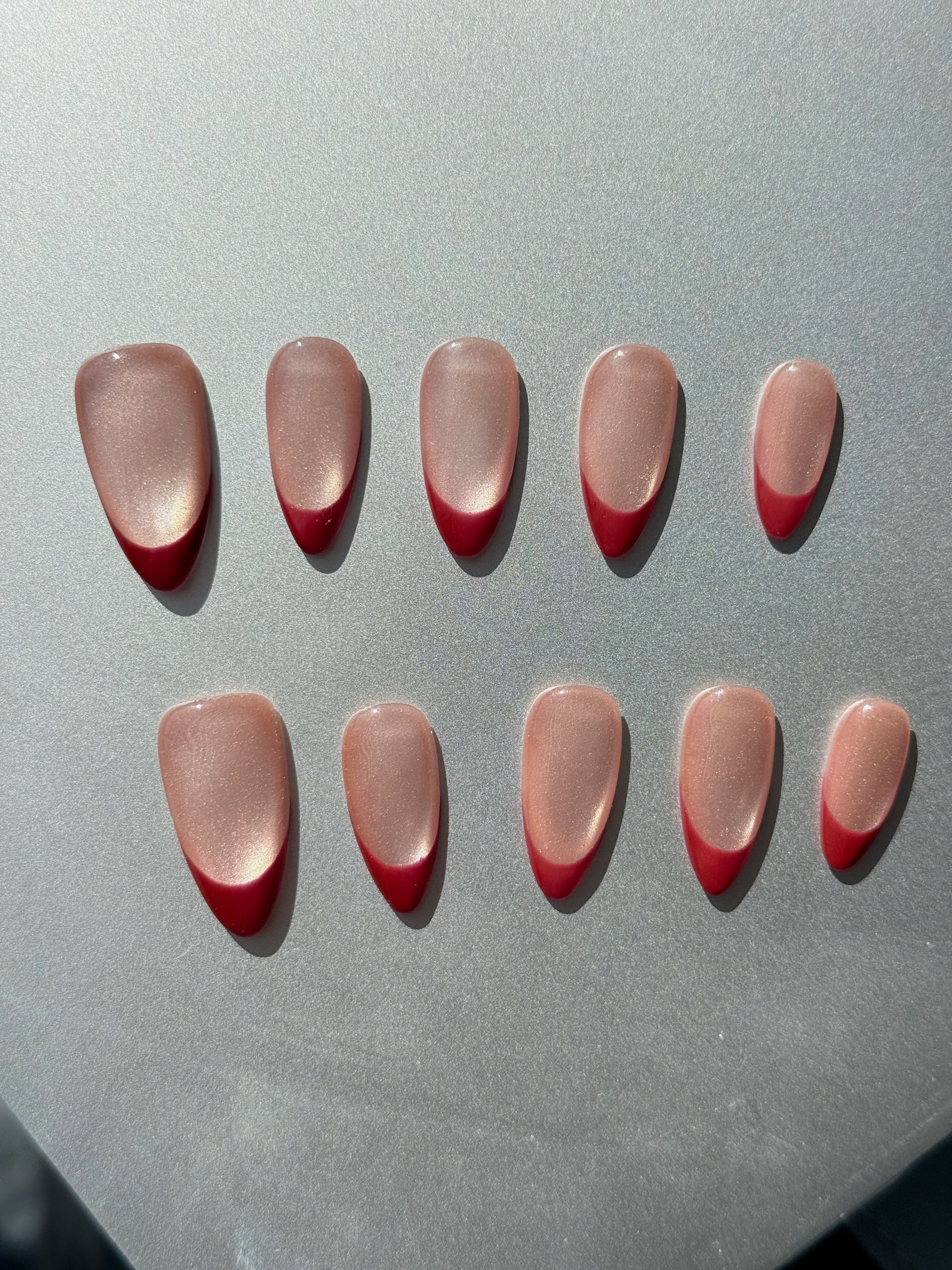 Timeless elegance with a French Tip and sleek Cateyes design.