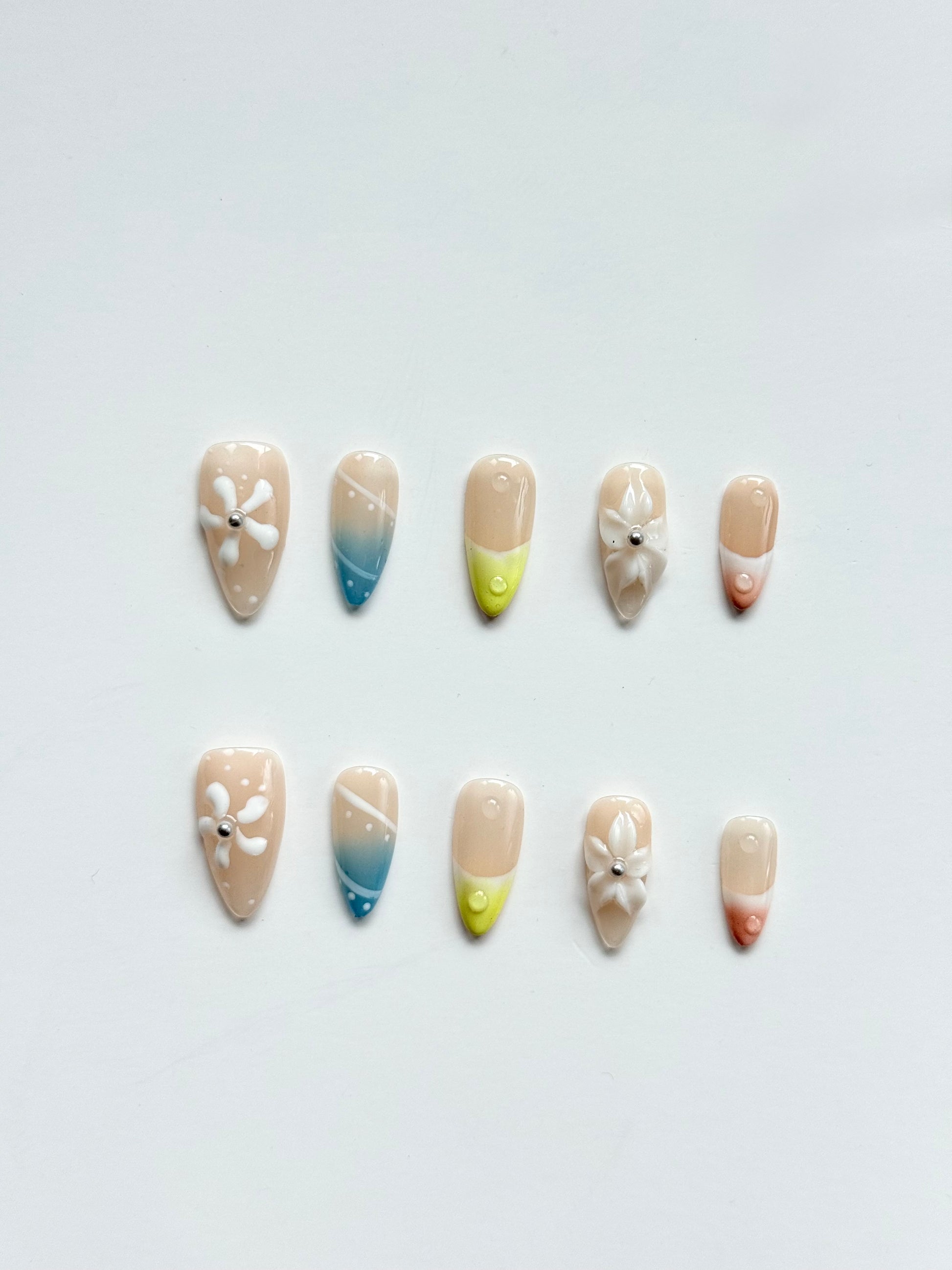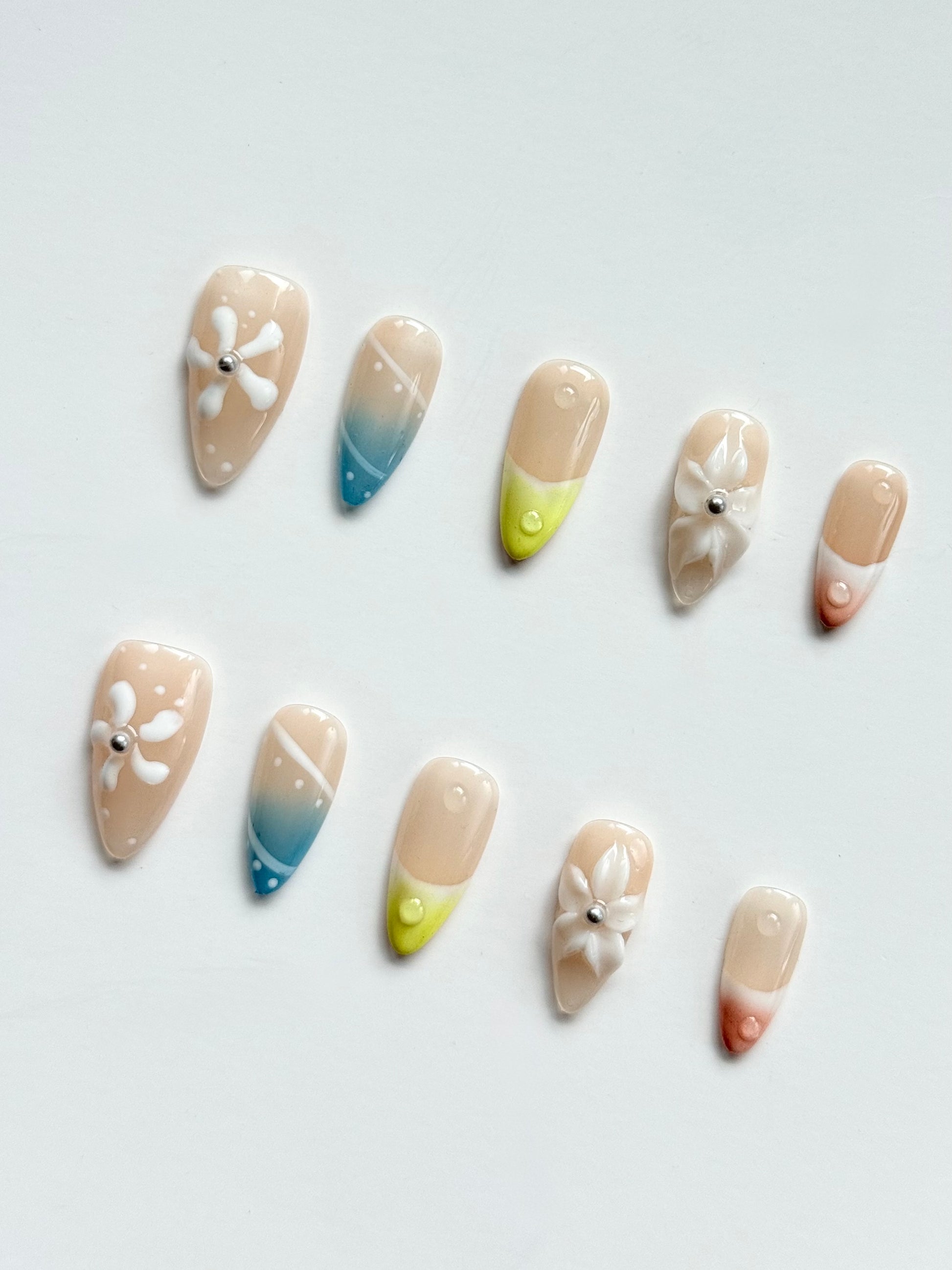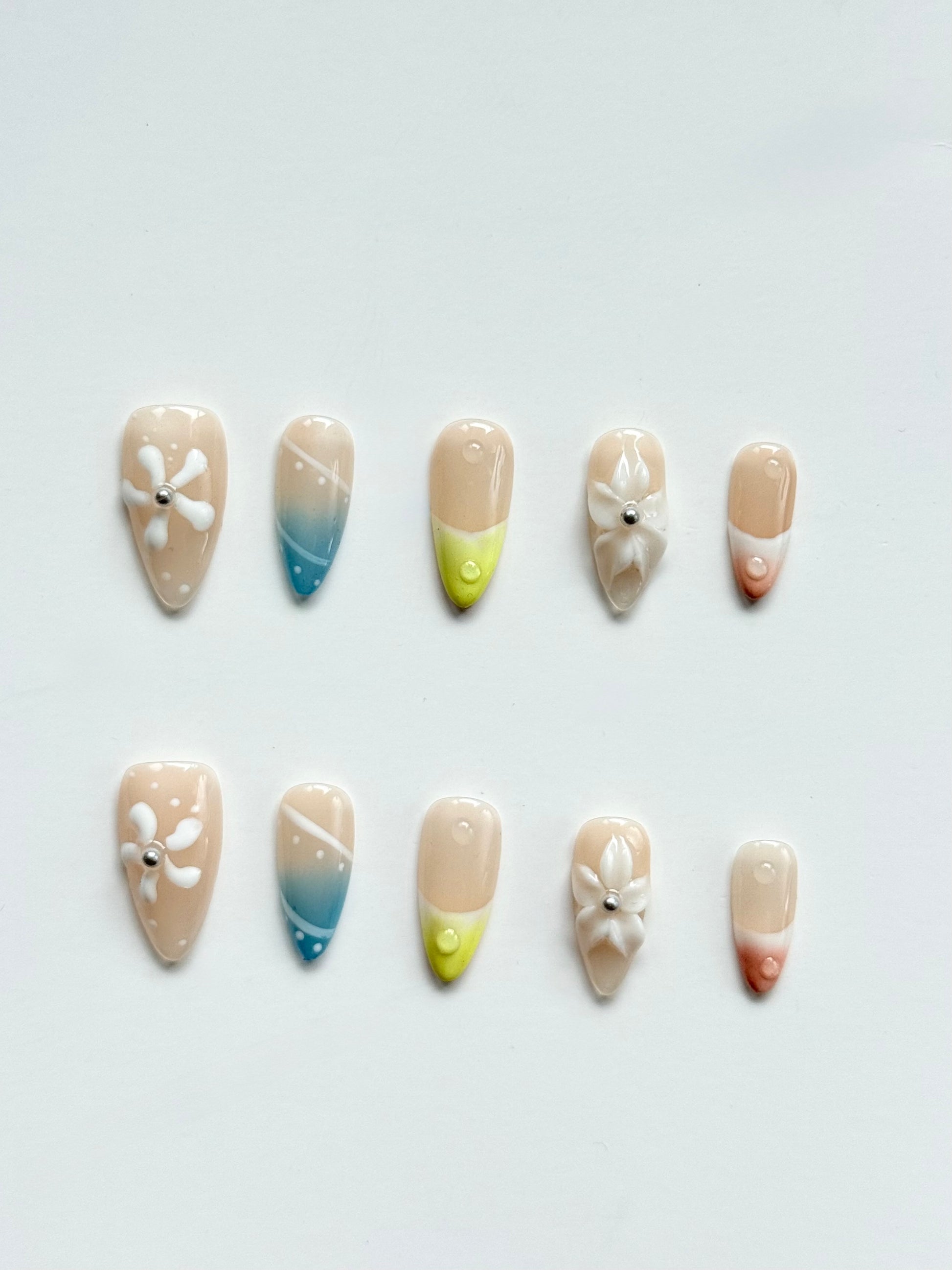 Sunshine meets the sea in this playful blue and yellow press-on nail set.